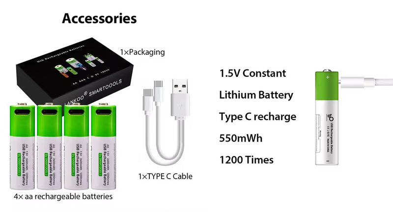 1.5V AAA USB rechargeable lithium battery with type-c port