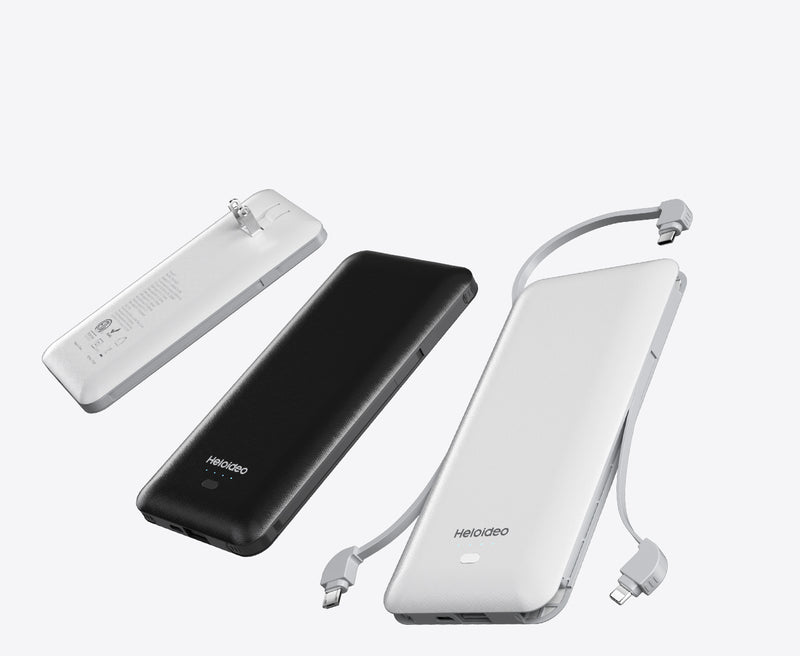 10000mah Ultra-Slim AC plug Power Bank Charger built-in Lightning Micro Cable Type-c cable for iphone android phone Heloideo PB147AC