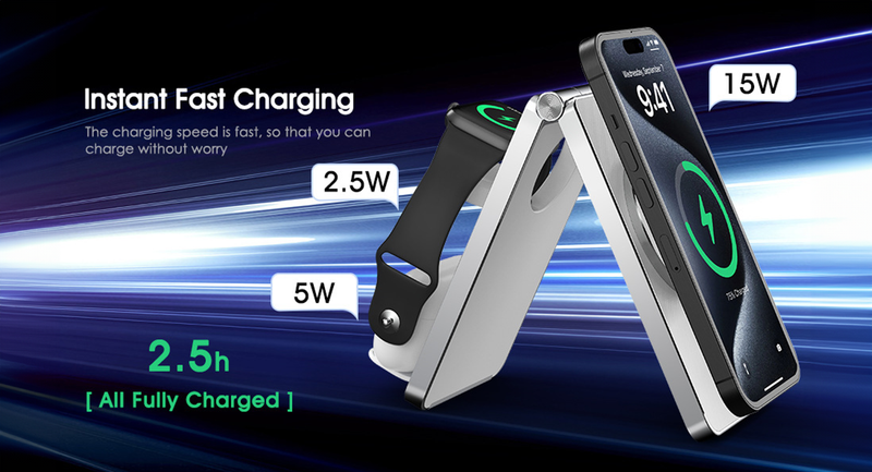 Supports 15W wireless fast charging, providing sufficient power for your device and improving charging efficiency. - Foldable design:
