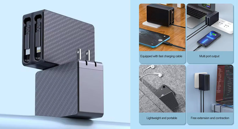 This charger is a multifunctional, multi port Type-C charger that supports Apple devices such as iPhone, iPad, MacBook, as well as other electronic products that support Type-C interfaces. It can quickly charge multiple devices at the same time, providing higher charging power and greatly improving charging efficiency. Compact in size, easy to carry, suitable for travel or daily use, it is suitable for users with multiple devices and is an ideal choice for travel and office.