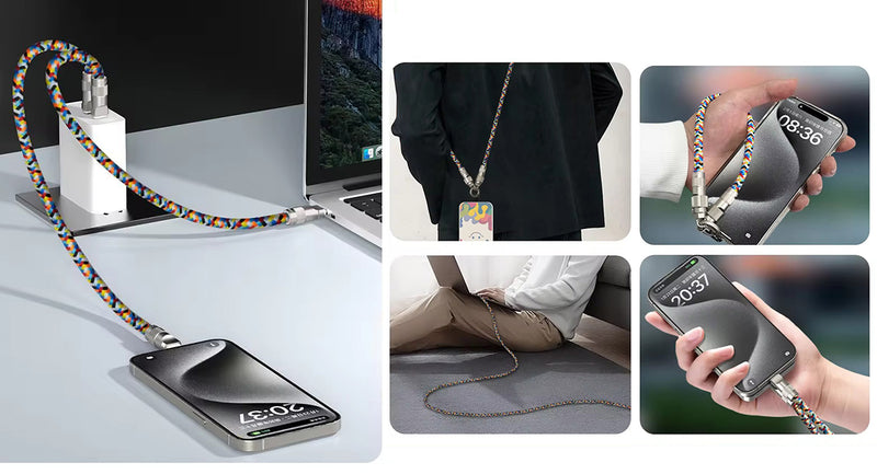 The latest innovation in mobile accessories is a 2-in-1 mobile phone lanyard charging cable that combines convenience and functionality. This anti loss lanyard features a durable woven design that ensures the safety of your phone, while also serving as a data cable connection when charging and data transfer are required Supporting fast charging function, this multifunctional cable supports high-speed charging for your device, ensuring you stay fully charged during your journey. Whether you're out or just need a reliable connection, this lanyard perfectly blends style and practicality.